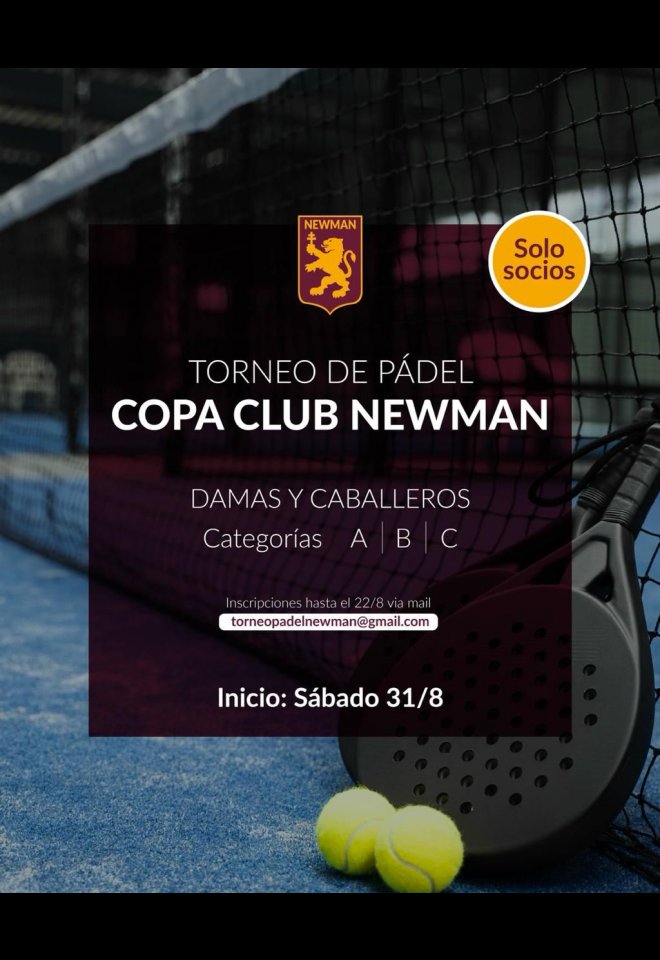 »» Evento: COPA CLUB NEWMAN 2024 »» Localidad: Benavidez »» Fechas: 31/08/2024 al 27/10/2024